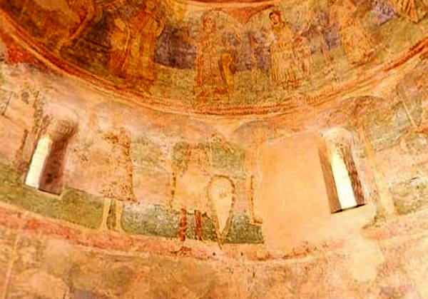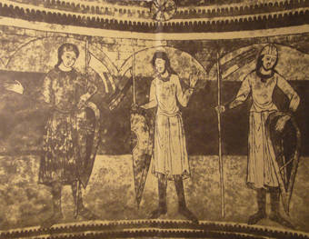 pásu maleb po stranách vítězného oblouku při vstupu do apsidy,