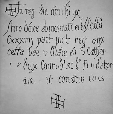 konsekračním křížem, malovaným současně s malbami. Nápis