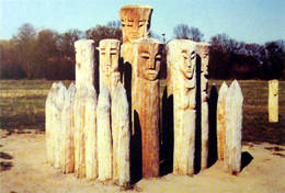 kultovního místa (obr. 7) tvořeného dřevěnými idoly pohanských božstev