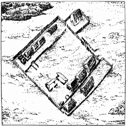 uprostřed. Vchod byl umístěn uprostřed jihozápadní stěny.