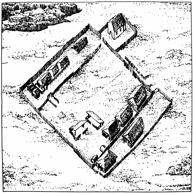 obvodovým valem a příkopem. V jejím severozápadním prostoru